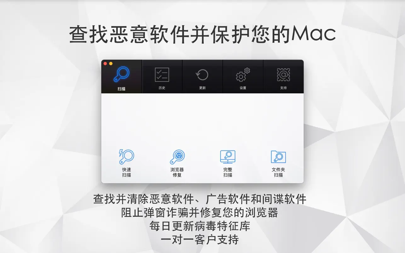 – 检测并移除恶意软件和病毒,以保护您的 Mac