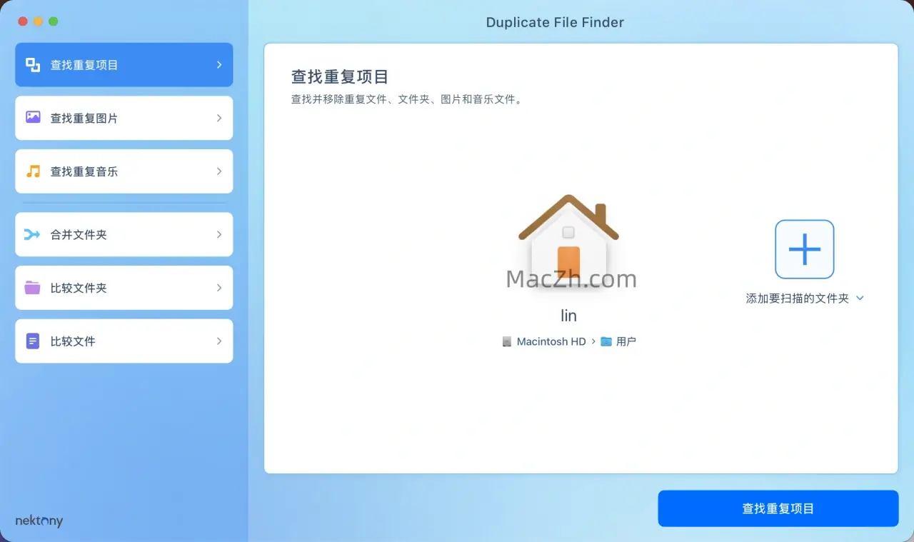 Duplicate File Finder Pro 是一种实用程序,只需单击 3 次即可找到 Mac 上的重复文件。拖放功能和任意数量的文件夹,然后按扫描按钮。一分钟后,该应用程序将按类别提供包含所有重复文件的报告:图像、视频、音乐、档案、文档等。很容易看出每个文件占用了多少空间。