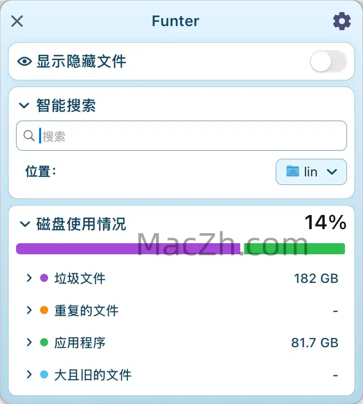 - 搜索隐藏文件:可搜索指定目录下的隐藏文件,解决 Spotlight 无法检索隐藏文件的问题。