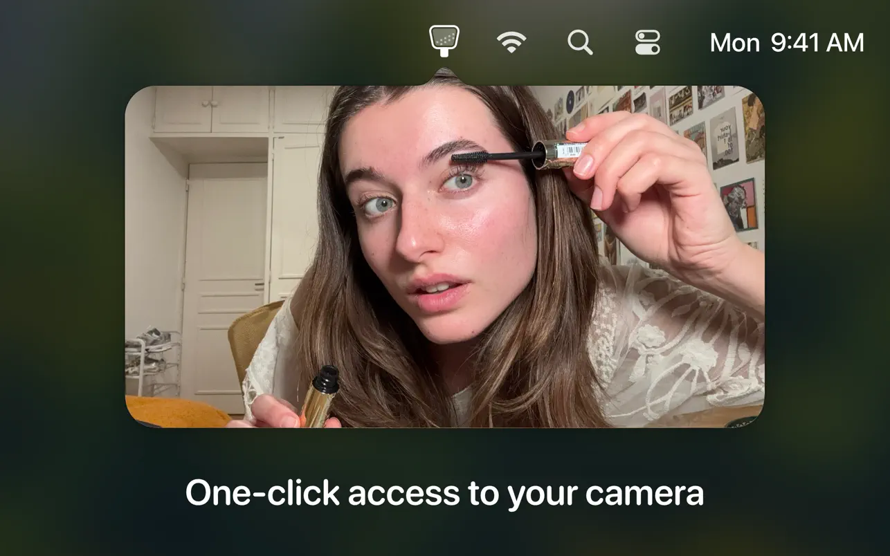 - 一键开启摄像头:点击菜单栏中的小镜子图标即可瞬间打开摄像头,无需启动 Zoom、Photo Booth 等大型应用。