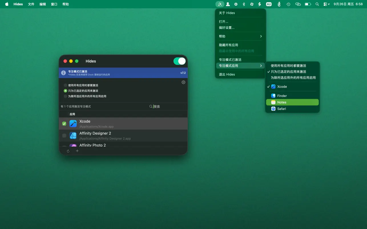 - 每当您单击应用程序的程序坞图标(或窗口)时,所有其他应用程序都会立即隐藏起来。 这创造了一个无干扰、最终更高效的工作空间。