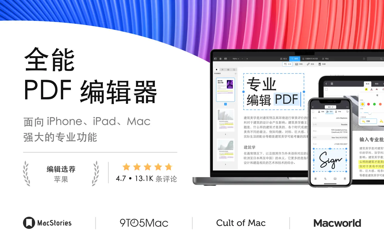 Mac 最先进的 PDF 编辑功能,变更 PDF 内容按您所需。