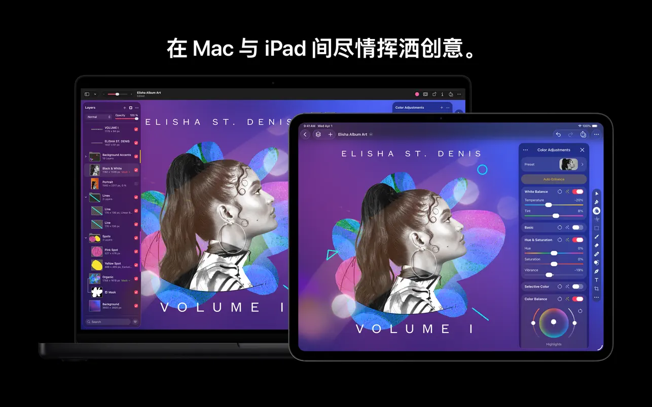 Pixelmator Pro 为你提供了打造设计、编辑照片、绘制插图、创作数字绘画和尽情挥洒创意所需的一切。