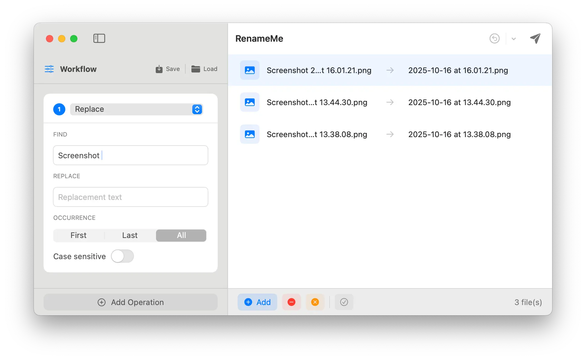 RenameMe 是一款专为 macOS 设计的专业级批量文件重命名工具。它通过直观的“堆叠操作”和实时预览,让用户能够高效、精准地一次性重命名数十甚至数百个文件。