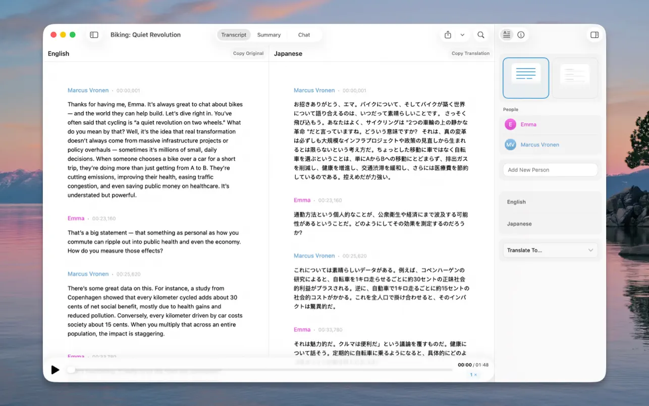 使用最先进的转录技术Whisper,快速轻松地将音频文件转录为文字。无论您是录制会议、讲座或其他重要音频,Whisper for Mac都能快速准确地将音频文件转录为文字。