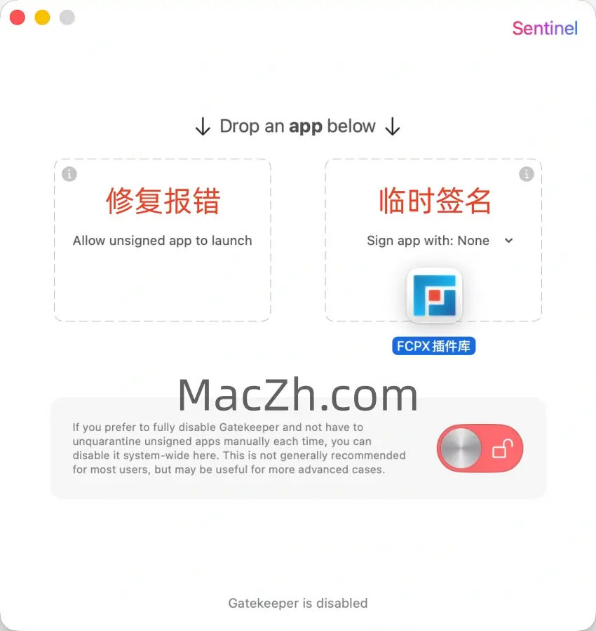 简单说Sentinel就是一款专门修复一些破解软件或开源无签名Mac应用已损坏,无法打开等问题。
